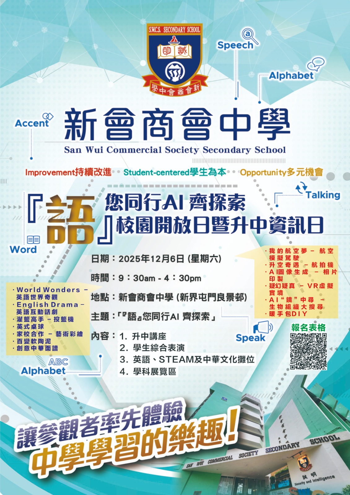 誠邀參加「『語』您同行AI齊探索 - 校園開放日暨升中資訊日」